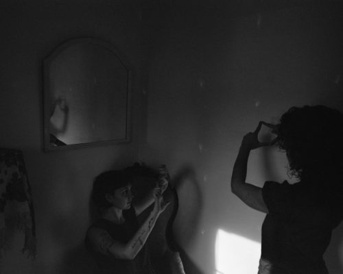 In photographing those close to me I aim to visualize a web of connection. Traversing between constructed and diaristic modes of production my images of friends, family and the environments surrounding us access portals to grief and belonging. Imaginary structures aid in accessing this cosmology of closeness.  Performance and my own intervening within the work are a self-referential approach to photography’s post-documentary tradition. In visualizing a relationship between camera, subject and photographer I seek to make visible, and complicate, the relationship I share with both.